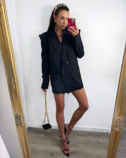 - Marynarka o luźnym kroju: Jeśli preferujesz bardziej swobodny i relaksujący wygląd, marynarka o luźnym kroju może być dobrym wyborem. Wybierz oversize’ową marynarkę lub marynarkę boyfriend style, która jest większa niż Twoja rozmiarówka. To świetne rozwiązanie dla sukienek casualowych lub oversize’owych.