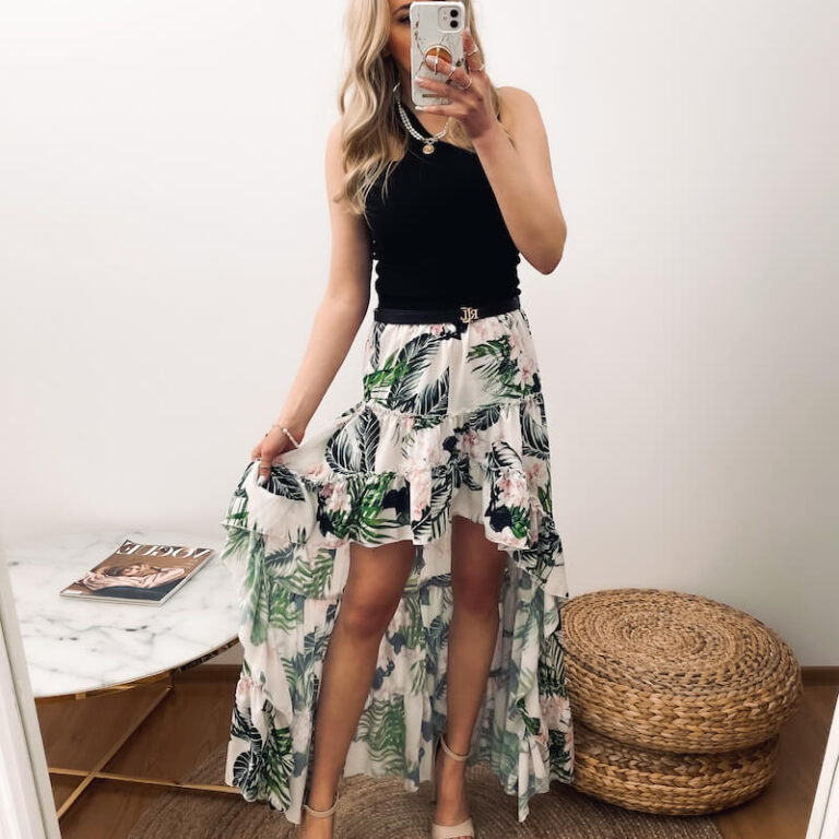 Spódnica boho o asymetrycznym kroju w tropikalny print