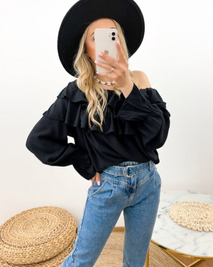 Bluzka Hiszpanka Czarna Boho Długie Rękawy