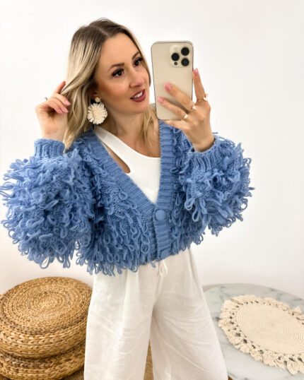 Niebieski Kardigan z Frędzlami Boho DIEGO