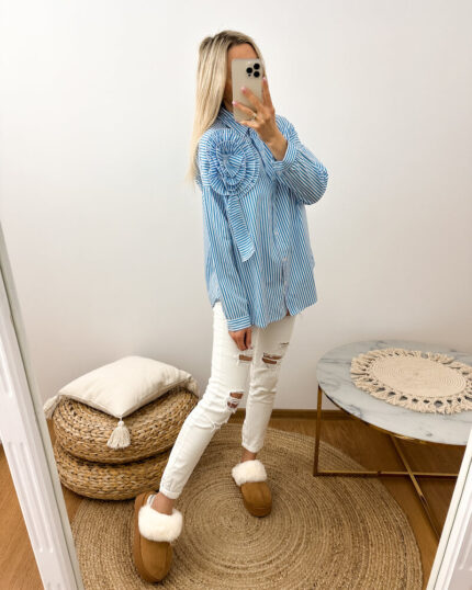 Koszula w Paski z Różą 3D Niebieska