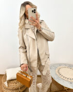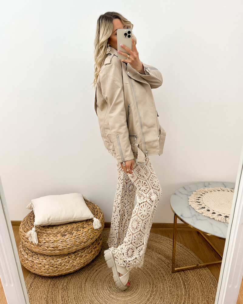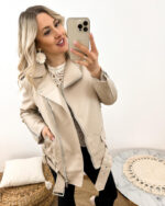 Beżowa ramoneska damska podkreśli Twój indywidualny styl. Zaprojektowana w modnym fasonie oversize doda Twoim stylizacjom niepowtarzalnego charakteru. Jej dłuższy krój oraz pasek w dolnej części nadają jej nowoczesny i oryginalny wygląd. Wygodne zapięcie na suwak zapewnia szybkie i łatwe zakładanie oraz zdejmowanie kurtki, co jest niezwykle praktyczne w codziennym użytkowaniu. Dostępne rozmiary S/M i M/L gwarantują, że każda Kobieta znajdzie odpowiednią dla siebie. Wybierz naszą beżową ramoneskę z eko skóry, aby dodać swojej garderobie elegancji i stylu! Zobacz inne modele kurtek dostępnych w naszej kolekcji.