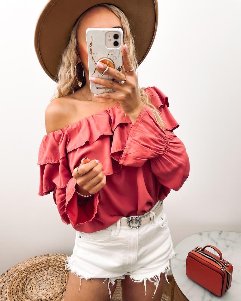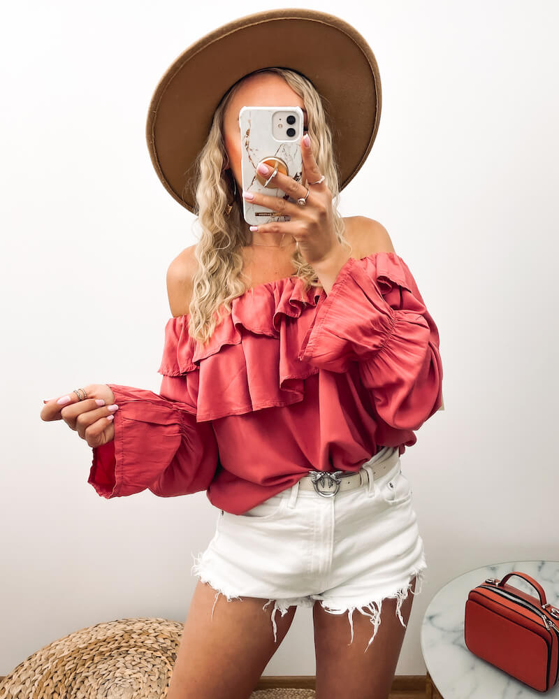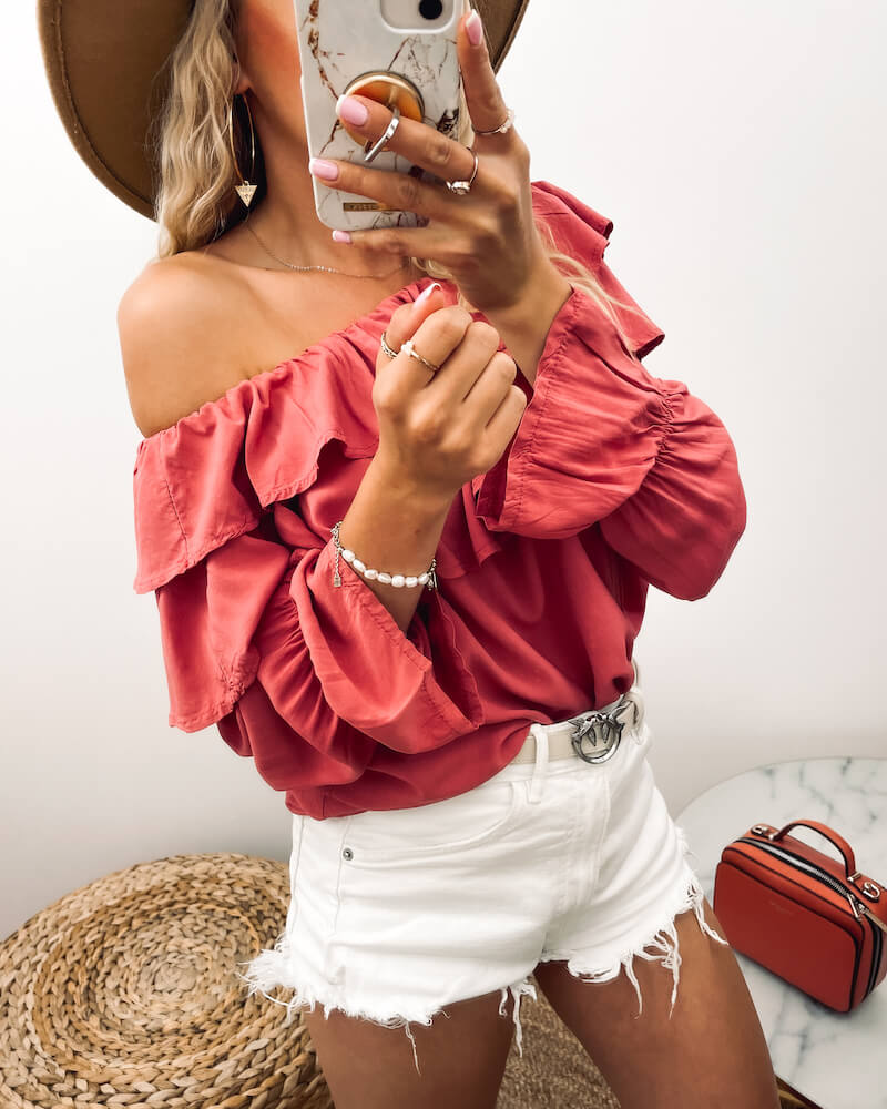 Bluzka Hiszpanka Koralowa Boho z Długim Rękawem