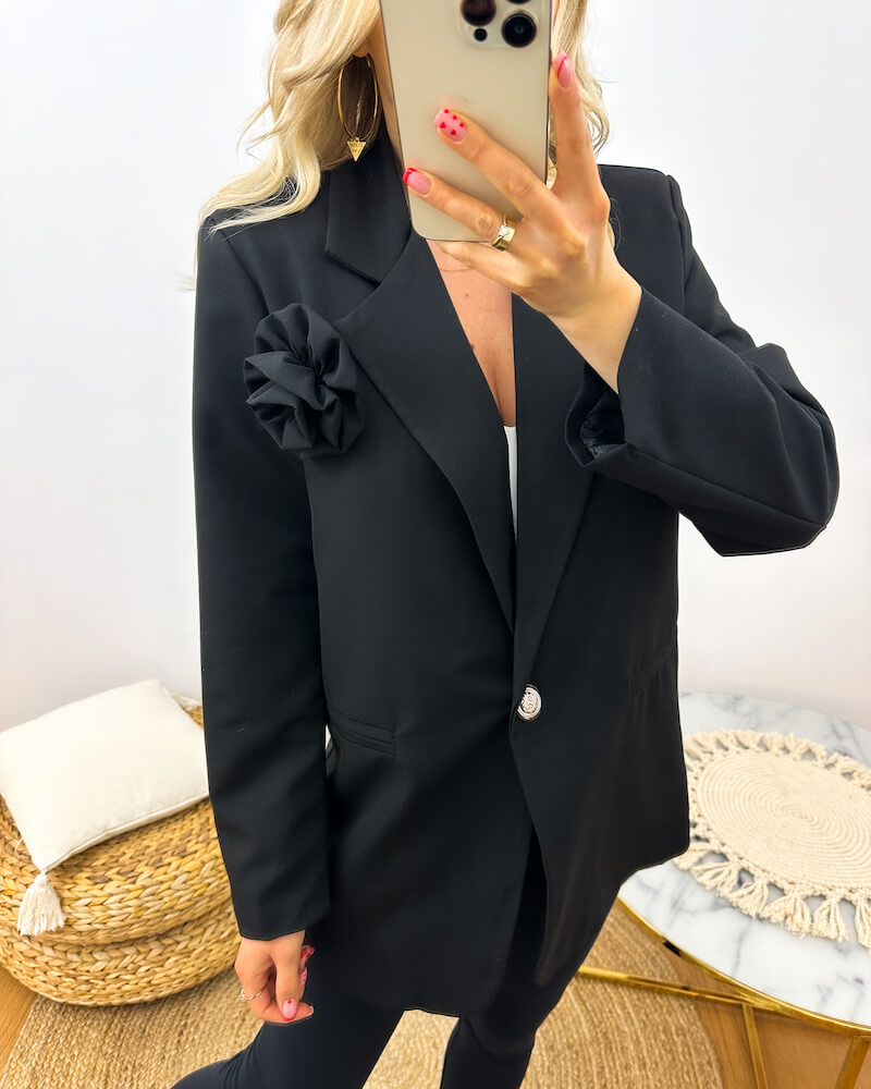 Czarna Marynarka z Różą 3D Oversize