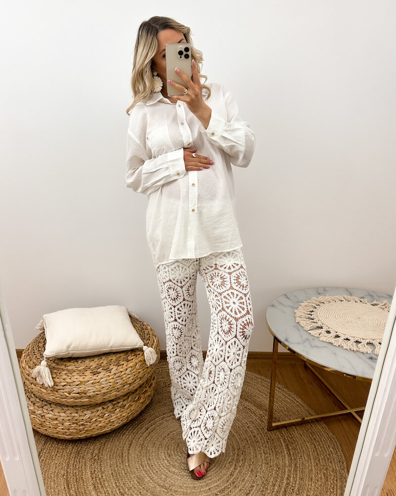 Koszula Ciążowa Biała Oversize na Guziki Rayon