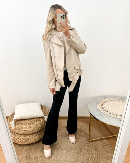 Marynarka w klasycznym beżowym kolorze to element obowiązkowy w Twojej garderobie. Sprawdzi się w wielu stylizacjach. W wersji smart casual załóż dopasowane spodnie w beżowym kolorze, top lub białą koszulę, do tego mała torebka typu kuferek lub listonoszka w wężowy print z naszej kolekcji. W luźnej, codziennej stylizacji marynarka świetnie prezentuje się z jeansami typu boyfriend, krótkim koronkowym topem i miejskim plecakiem, do tego sportowe, wygodne buty. Marynarka świetnie sprawdzi się również jako okrycie wierzchnie na imprezy okolicznościowe typu chrzest, komunia czy wesele. Ten neutralny kolor świetnie dopasuje się do wszelkiego rodzaju sukienek: cekinowych, wzorzystych, a także jednokolorowych.